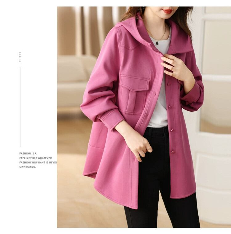 Eign trade counter ブランドテールグッズスタイルルーズフード付きコート女性の秋と冬のファッション気質ウインドブレーカーミッドレングストップ オータム 秋物 ウィンター 冬物 sine47088518901