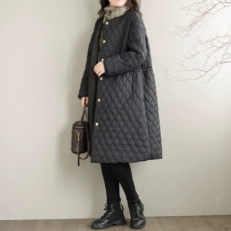 第一線のブランド eign trade 店頭から取り下げられた商品ひし形のミドル丈のコットン コート レディース ルーズ キルティング 厚みのある暖かいコットン コート sine30927476039