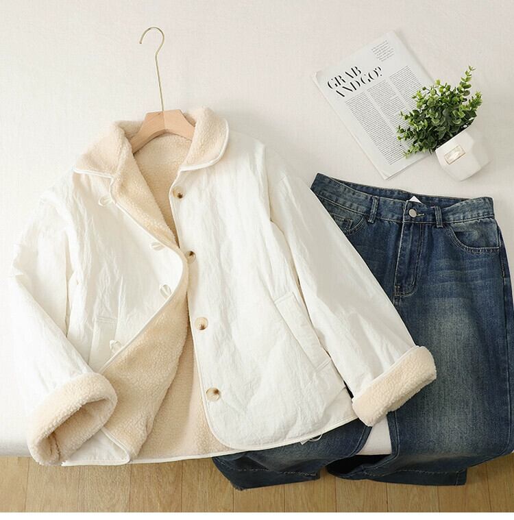 クリアランスカウンター、大手ブランドのテールグッズ、レトロなラムウールの中綿入りジャケット、レディースのゆったりとした厚みのある暖かい中綿入りのジャケット コットン sine6802561498