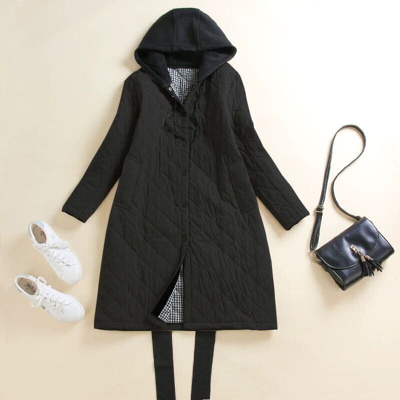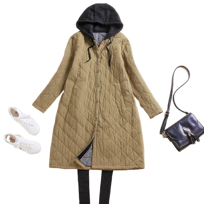 モールの有名人がカウンターから撤退、レトロな厚みのあるフード付きコットンジャケットの女性、ルーズキルティングのミドル丈コットンジャケット sine72248777686