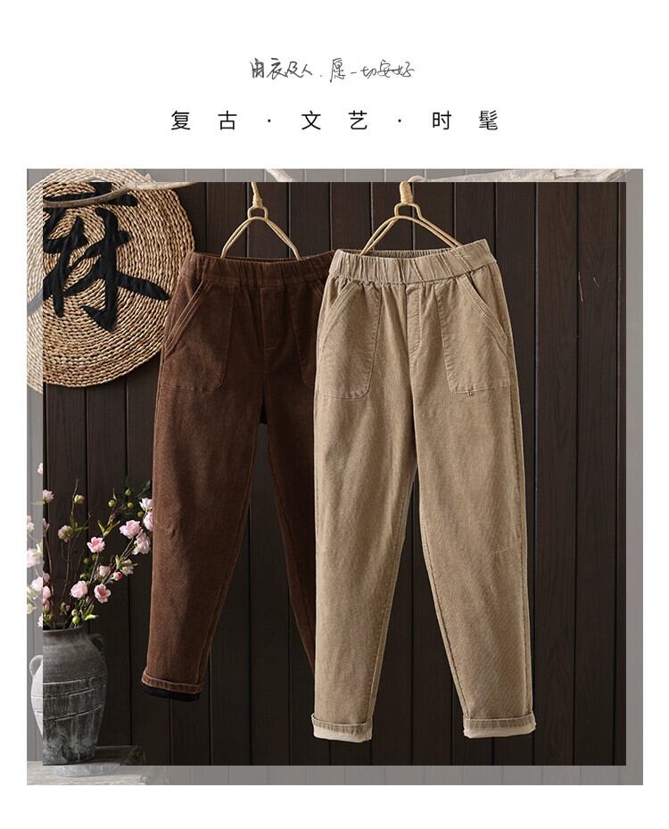 Eign Trade Counter ブランド テール グッズ プラス ベルベット肥厚コーデュロイ パンツ レディース、ルーズ ハイウエスト スリム コーデュロイ ラディッシュ ハーレム パンツ sine74939754457