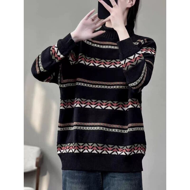 ディスカウントストアショッピングモール撤退レトロプリントハーフタートルネックセーター女性の怠惰なルーズカジュアルセータートップ sine57977031609