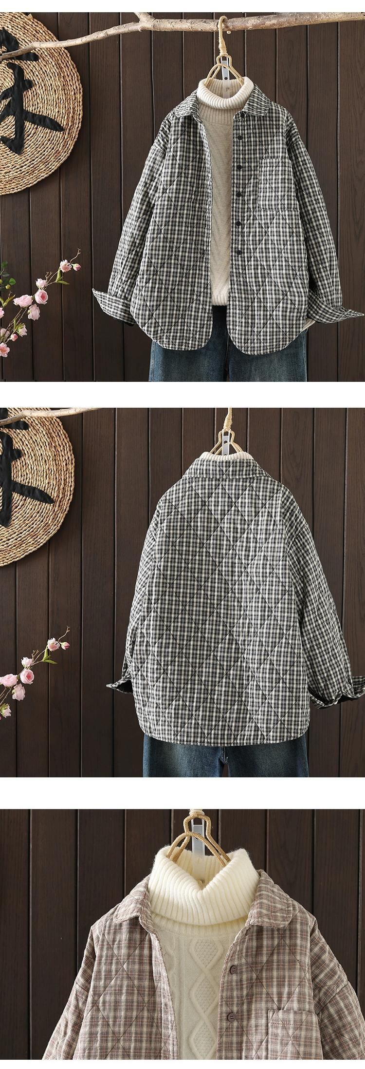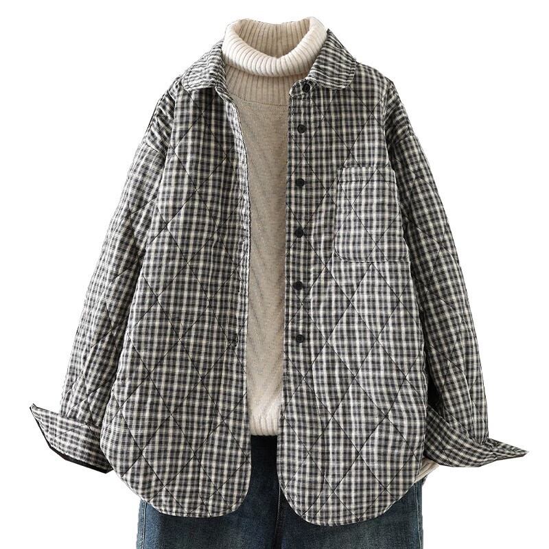 ディスカウントストアショッピングモール撤退レトロキルティングチェック柄コットンコート女性ルーズ肥厚暖かいラペルコットンコート sine69264564372