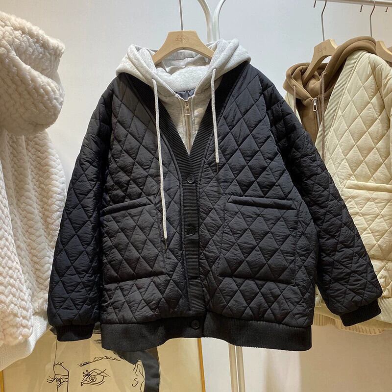 クリアランスカウンター引き出しスタイル薄型ダウンコットンジャケット女性ルーズキルティングフェイクツーピースコットンジャケット sine64814932002