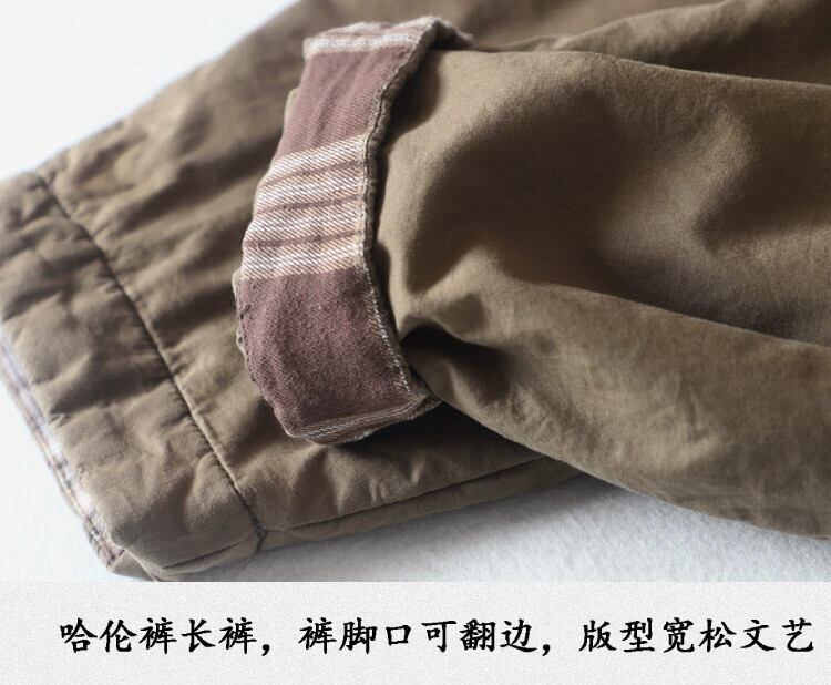クリアランスカウンター最後の在庫レトロキルティングハーレムパンツ女性のハイウエストドローストリング厚く暖かいアウターウェアコットンパンツ ハイウェスト sine43770318946
