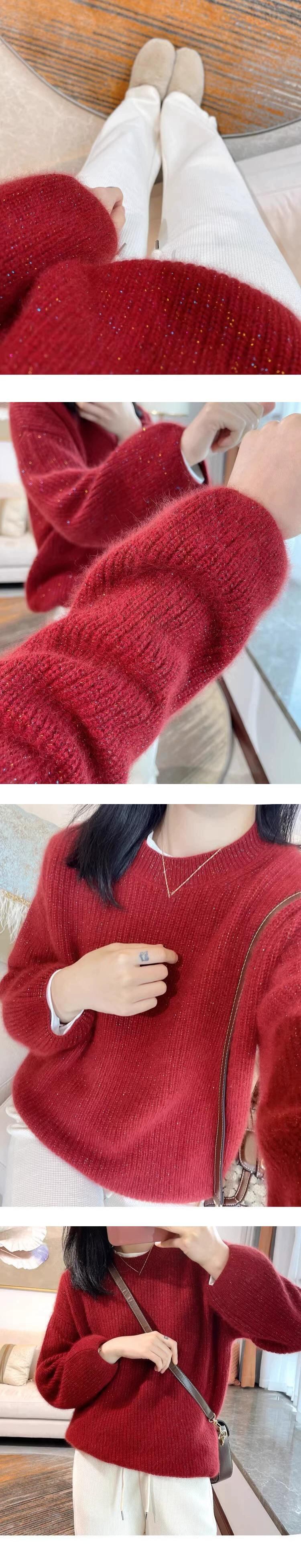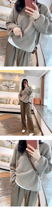 eign trade 割引ブランドオフ製品紫色の明るいシルクラウンドネックセーター女性、怠惰でルーズでソフトでワックスのようなインナープルオーバーセーター Oネック パープル sine5567021479