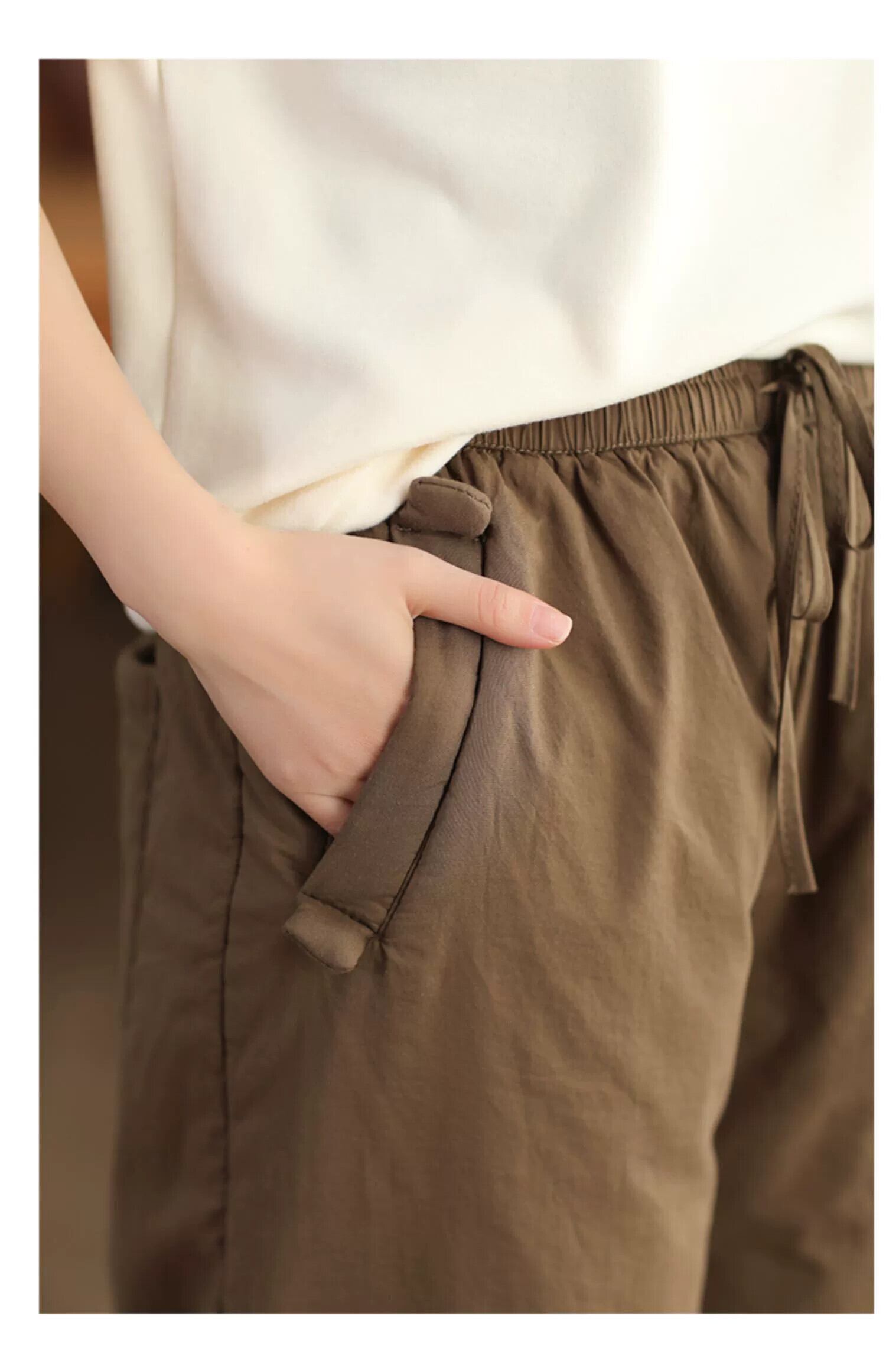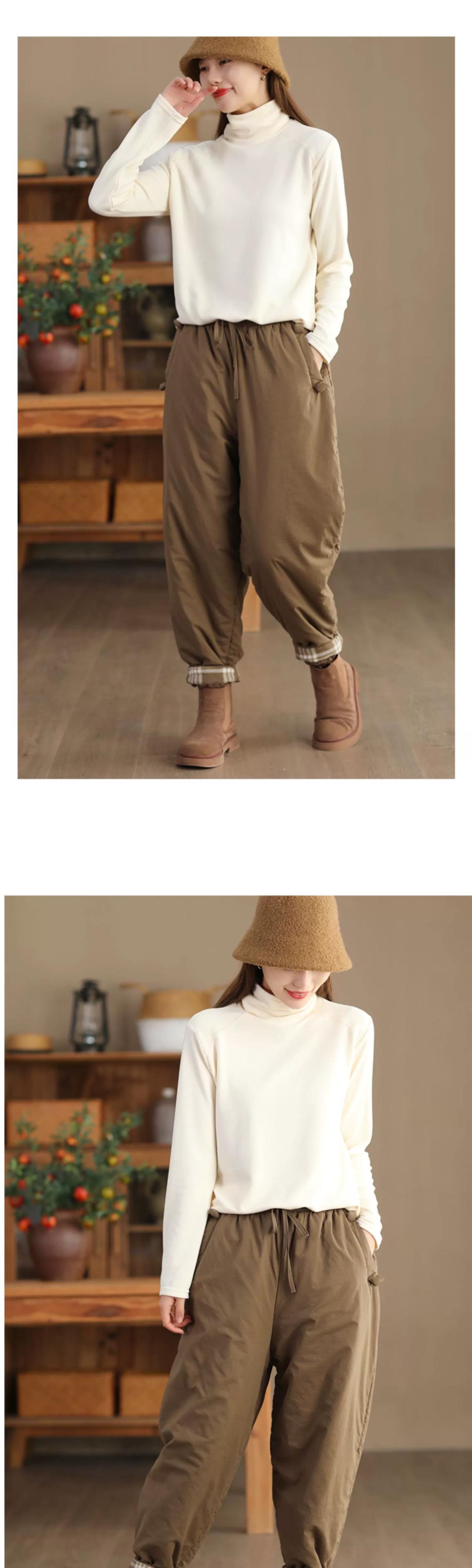 クリアランスリーク〜伸縮性のあるウエストと巾着付きのスリムで暖かい綿のパンツを備えたSEオリジナルのレトロなキルティングと厚みのあるハーレムパンツの女性 コットン エラスティック sine36547788196