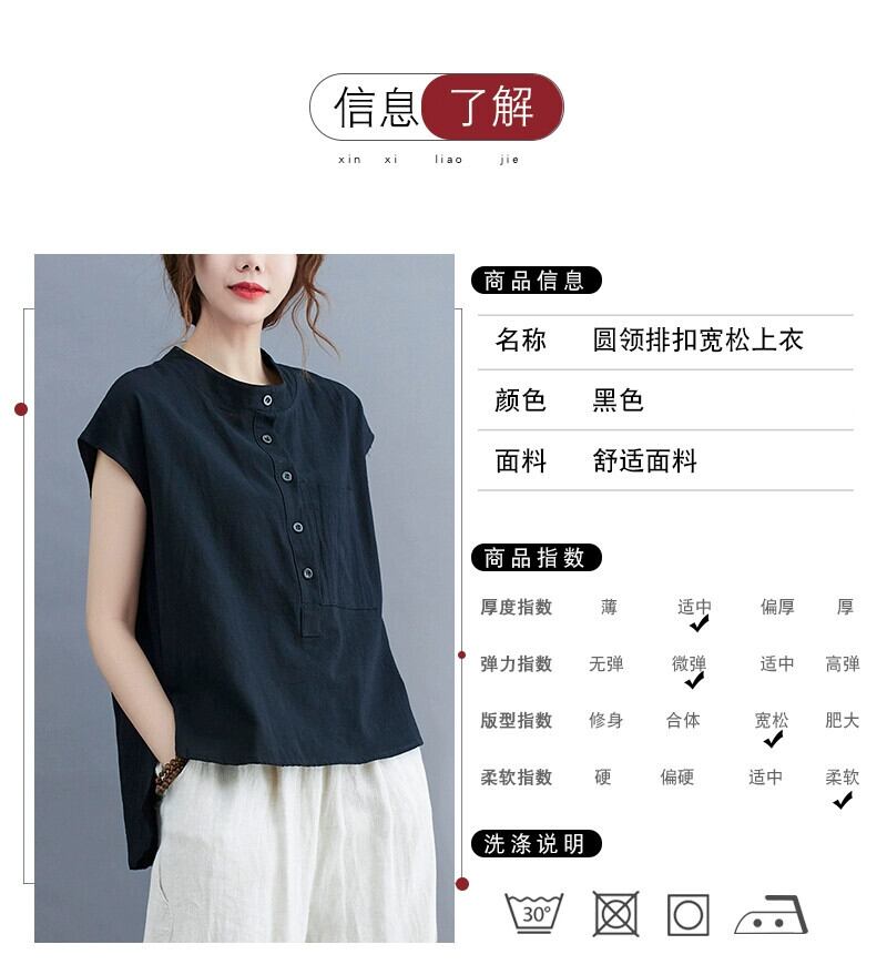 コットンとリネンのベストシャツレディース、ゆったりとした大きいサイズ、太い、スタイルワークウェアポケット、無地スタンドカラーカジュアルTシャツトップ 大きめサイズ ソリッドカラー sine72950096920