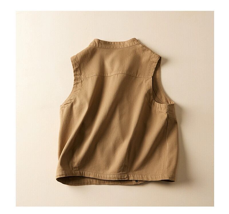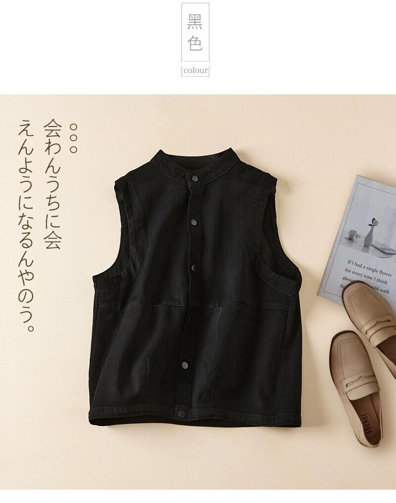 永貿易輸出ビッグブランド尾品撤退女性のレトロなスタンドアップカラーノースリーブトップルーズでスリムなツイルコットンベストジャケット sine46008628011