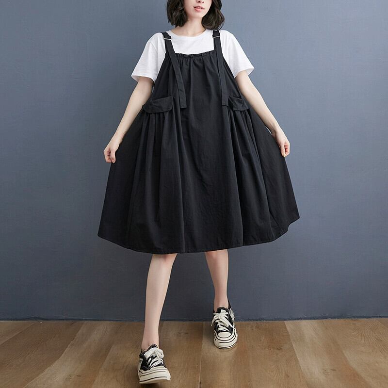 コットンとリネンのサスペンダースカートの女性、ゆったりとファッショナブルな、アインスタイルのサスペンダースカート、ハイウエスト、年齢を軽減する脂肪、大きいサイズのリネンのミドル丈スカート ハイウェスト 大きめサイズ sine51341133555