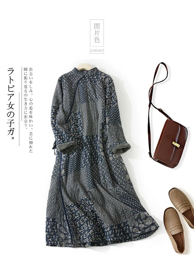 ディスカウント ストア ショッピング モールの女性の中国風スラント ラペル改良されたチャイナ ドレスとベルベットの厚みのあるプリント綿とリネンのドレス冬 コットン ウィンター 冬物 sine86595434541