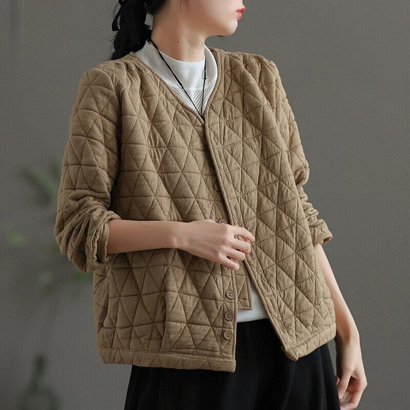 カウンタークリアランスクリアランスレディースレトロ菱形コットン野球ユニムルーズVネックジャケットトップ sine26318442541
