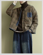 200 ポンド綿パッド入りショートジャケット女性冬ルーズ大サイズファットミリメートルレトロチェック柄キルティング肥厚暖かいスタンドアップカラー綿ジャケット コットン 大きめサイズ ウィンター 冬物 sine87100062090