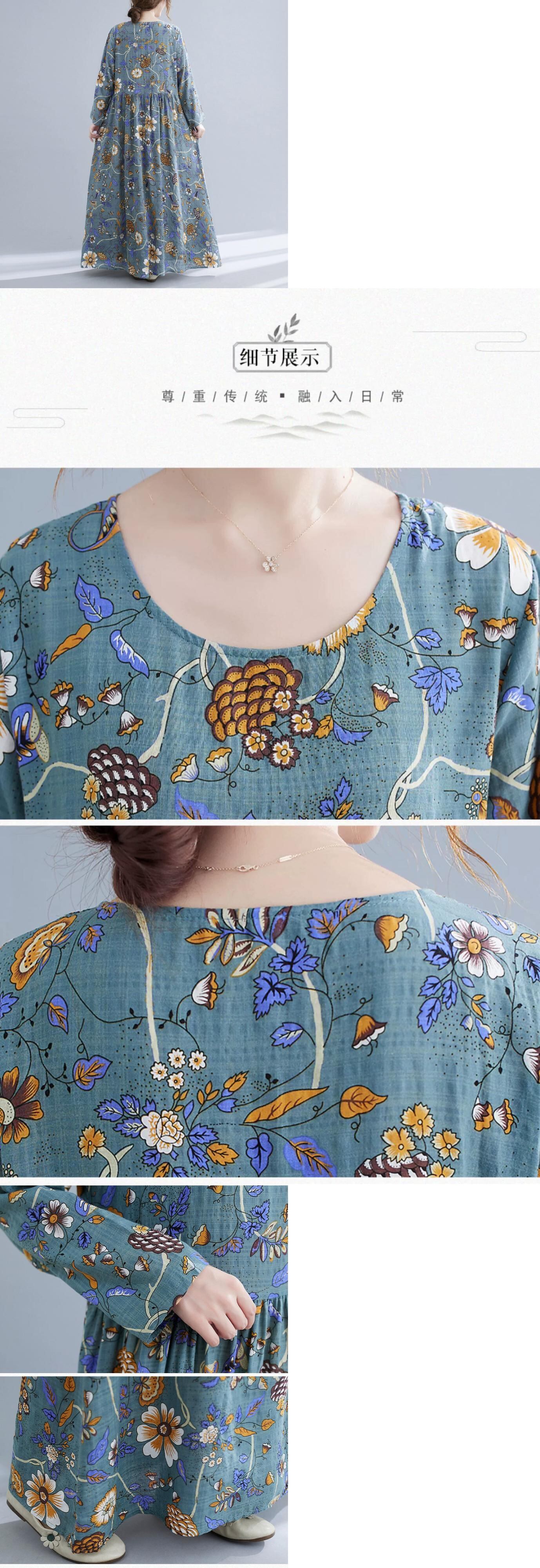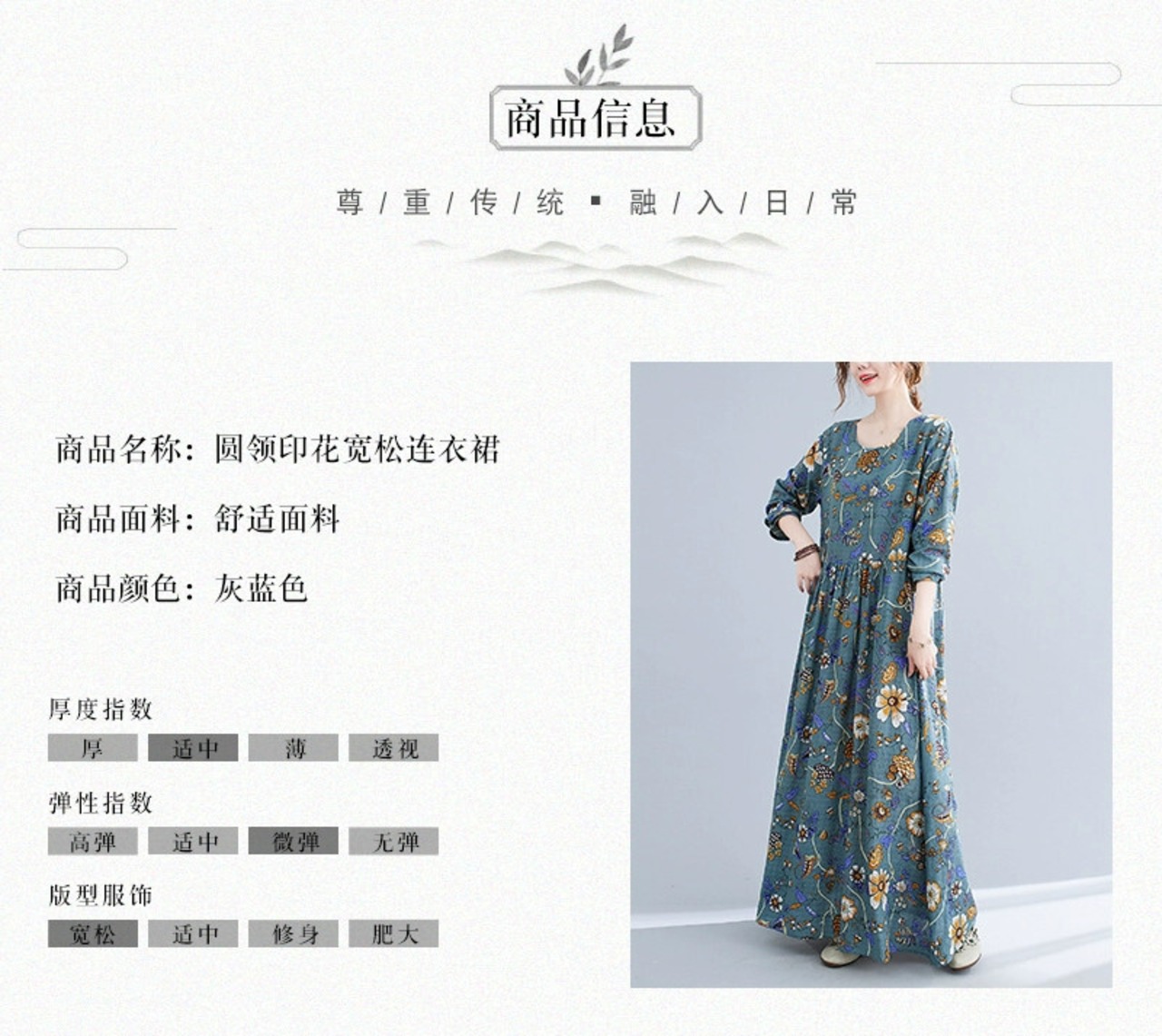 プラスサイズプラスサイズの女性の長袖ドレス 2021 春と秋のゆるい脂肪 mm 気質レトロプリント隠し肉ロングスカート 大きめサイズ スプリング 春物 オータム 秋物 sine98003023304