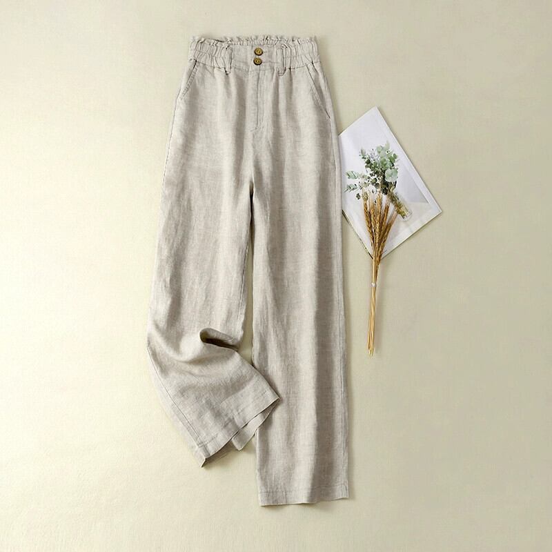 綿とリネンパンツの女性の 2022 春夏新スタイル芸術的なドレープハイウエストストレートスリム 9 ポイントリネンワイドレッグパンツ ハイウェスト コットン スプリング 春物 サマー 夏物 sine51626521074