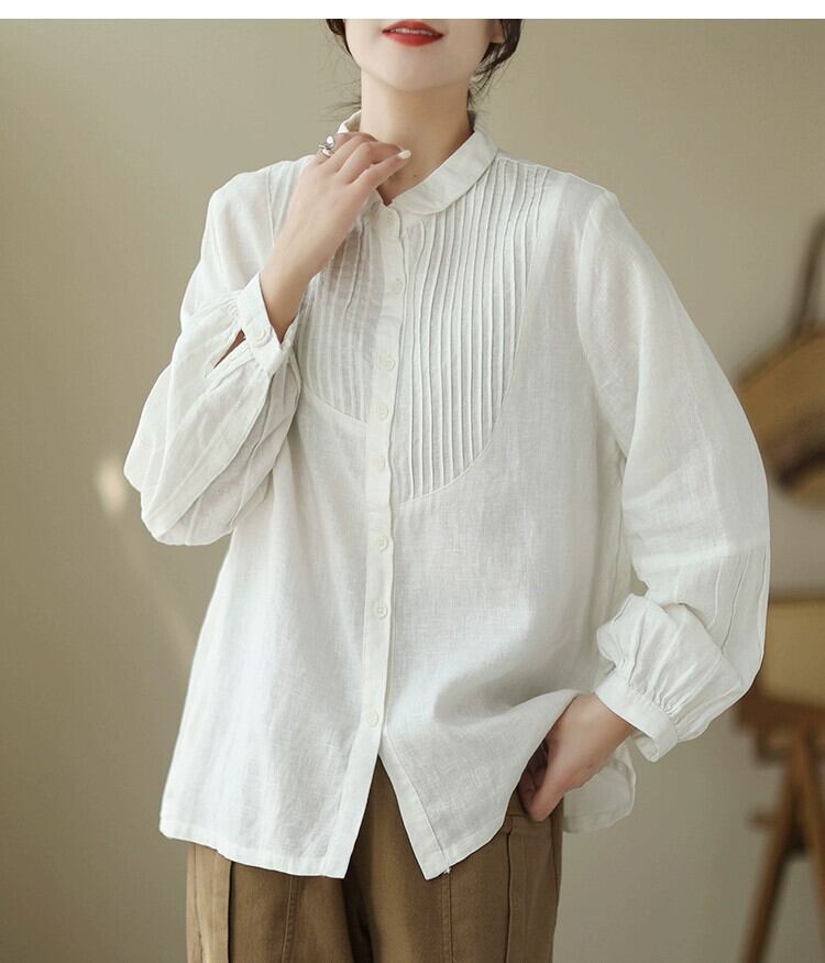 クリアランスリーク〜カウンター有名既製レディースレトロアコーディオンプリーツリネントップス秋のゆったりとしたコットンとリネンの長袖シャツ ロング オータム 秋物 sine35693548517