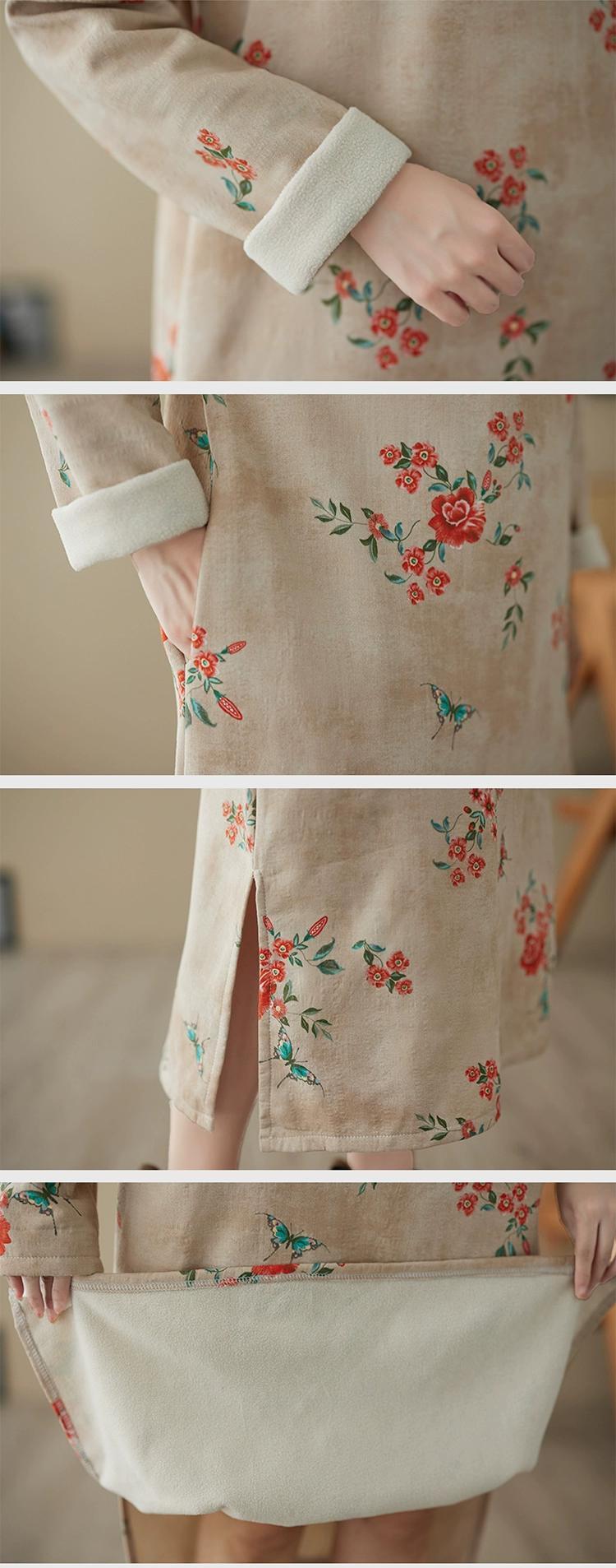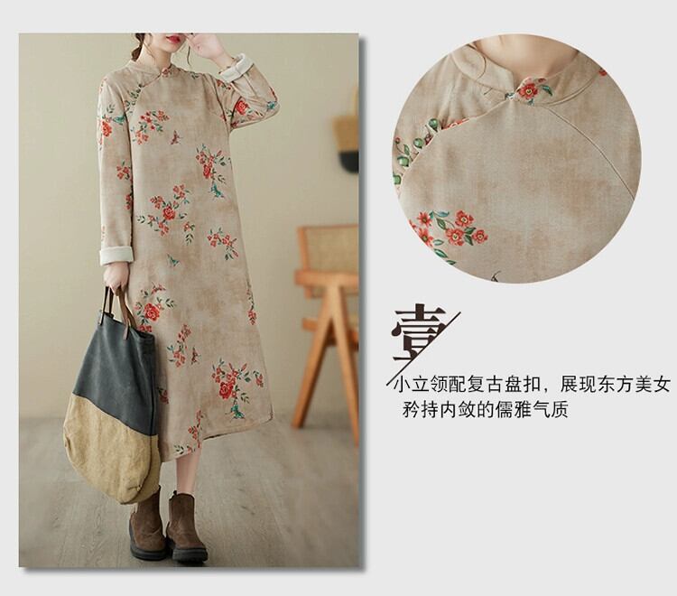 クリアランスクリアランスカウンタービッグブランドテールグッズ女性のエスニックスタイルプリントチャイナドレスルーズプラスベルベット肥厚コットンとリネンのドレス sine99141484240