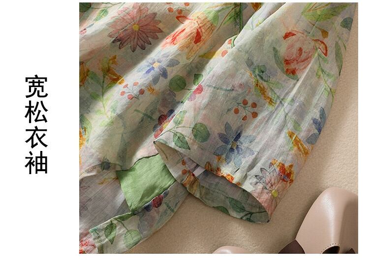 eign trade ese オリジナルビッグブランド撤退女性の中国風の綿とリネン半袖 T シャツカジュアル V ネック花柄リネントップ コットン Vネック Tシャツ sine58102008589
