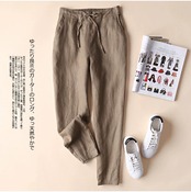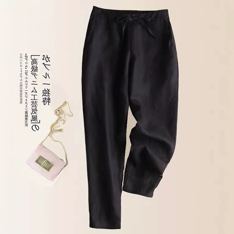 ディスカウントストアショッピングモール撤退レトロ綿とリネン9点カジュアルパンツ女性ルーズハイウエストリネン大根ハーレムパンツ コットン sine86124646932