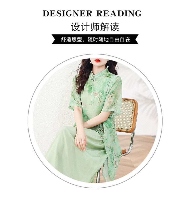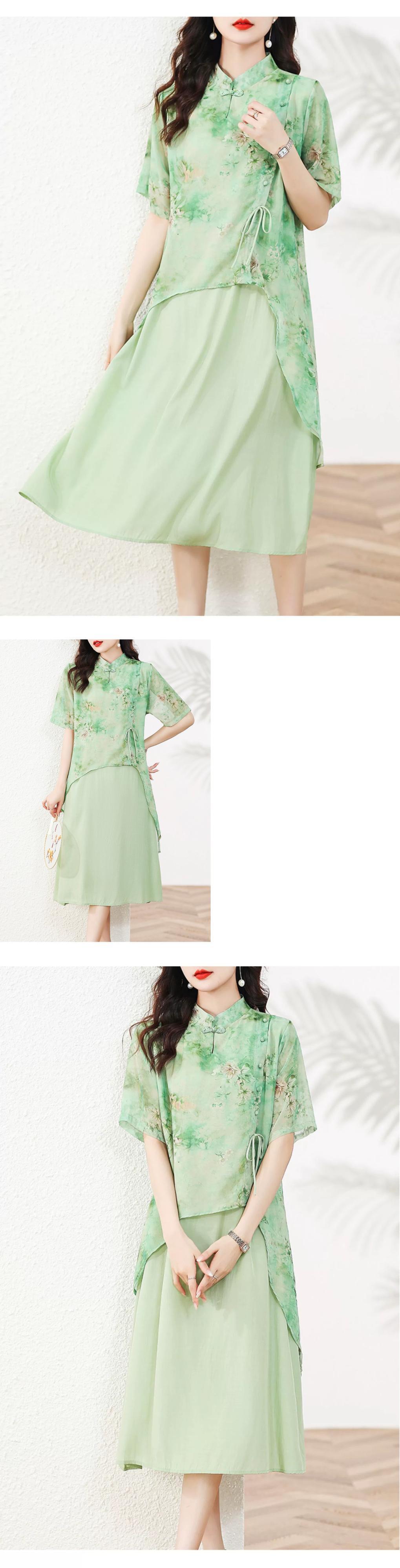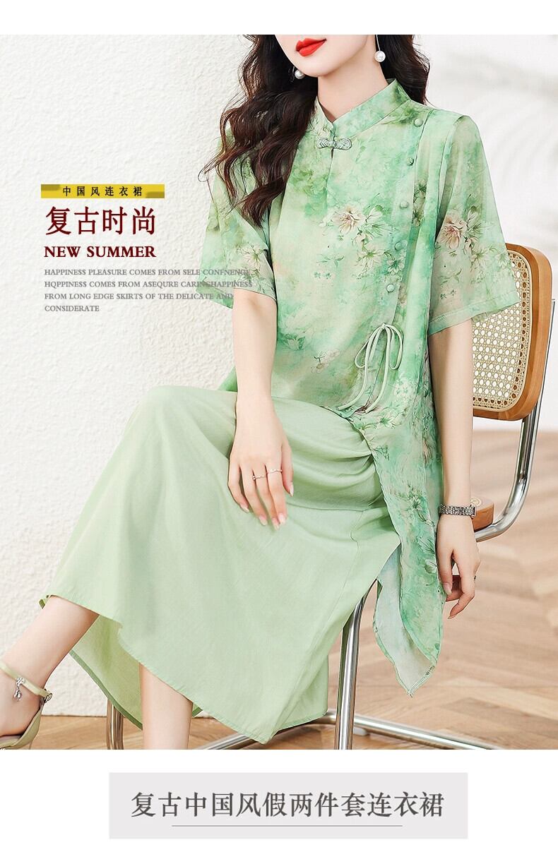 第一線ブランド永貿易撤退最終在庫中国風改良綿麻ドレスレディーススプライシングプリントスタンドカラーラミーロングスカート コットン sine71755017010
