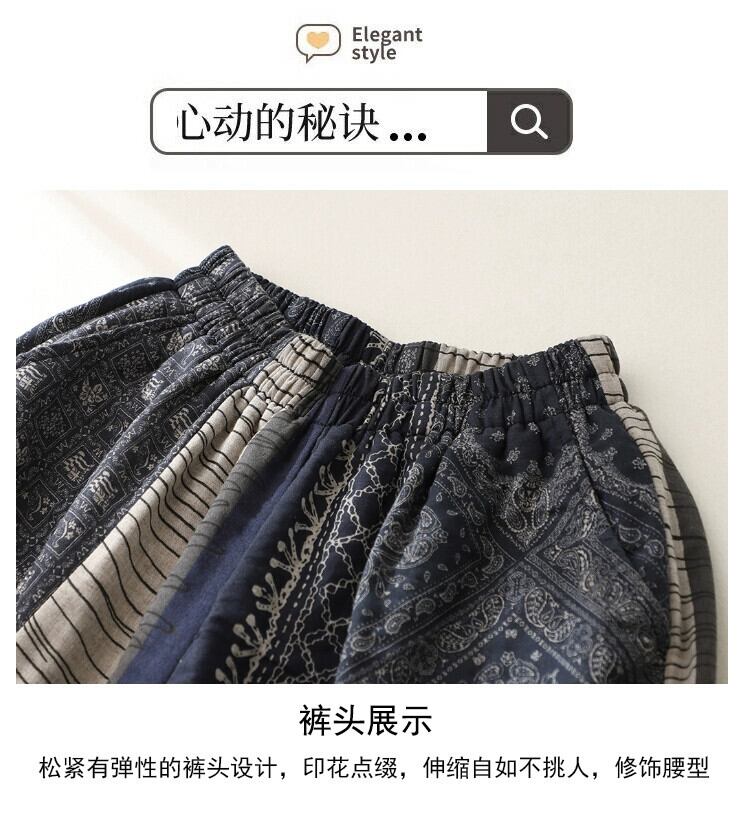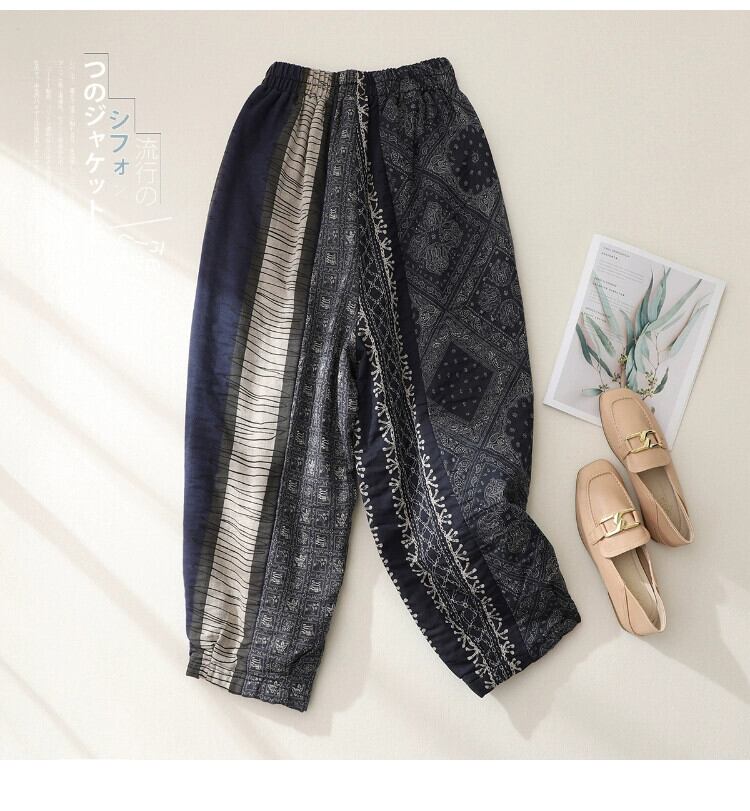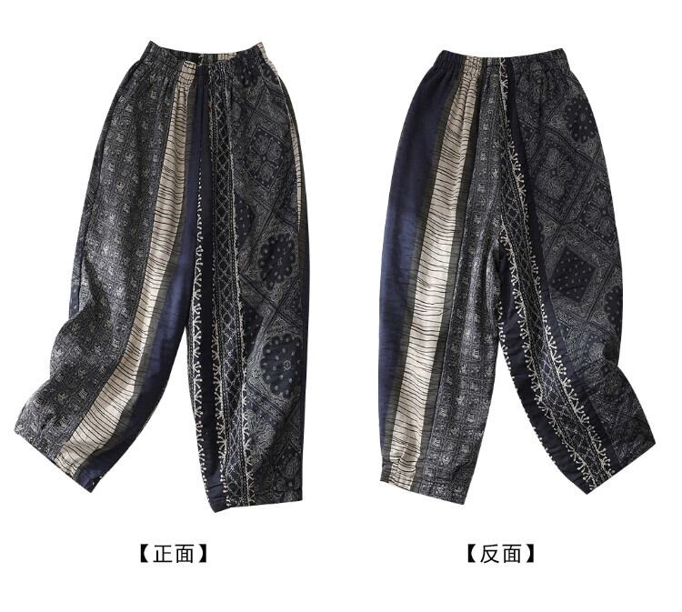 eign trade ese オリジナルハイエンドブランドルーズカジュアルリネン 9 ポイントパンツ女性エスニックスタイルプリント綿とリネンハーレムパンツ コットン sine40594971501