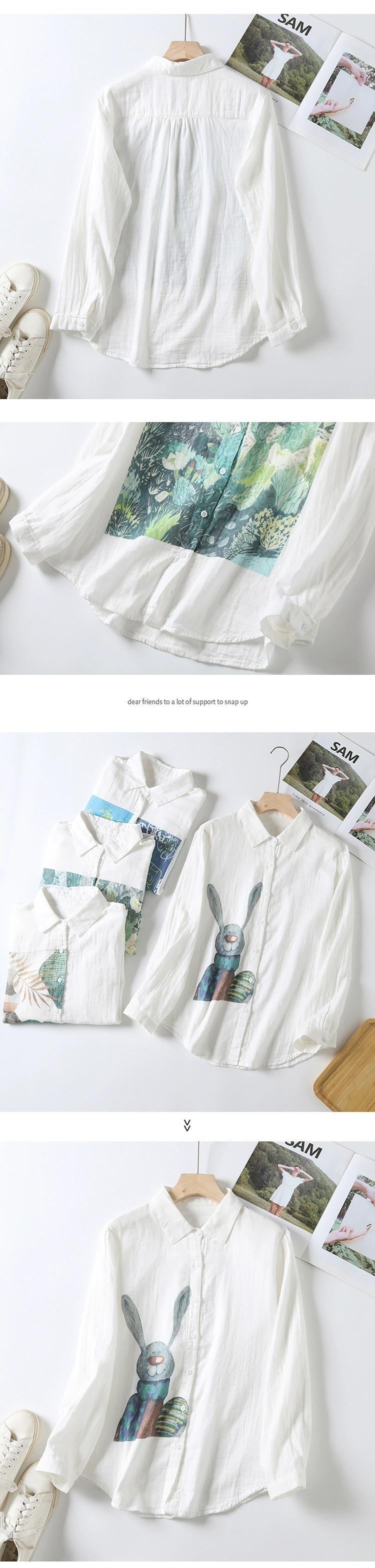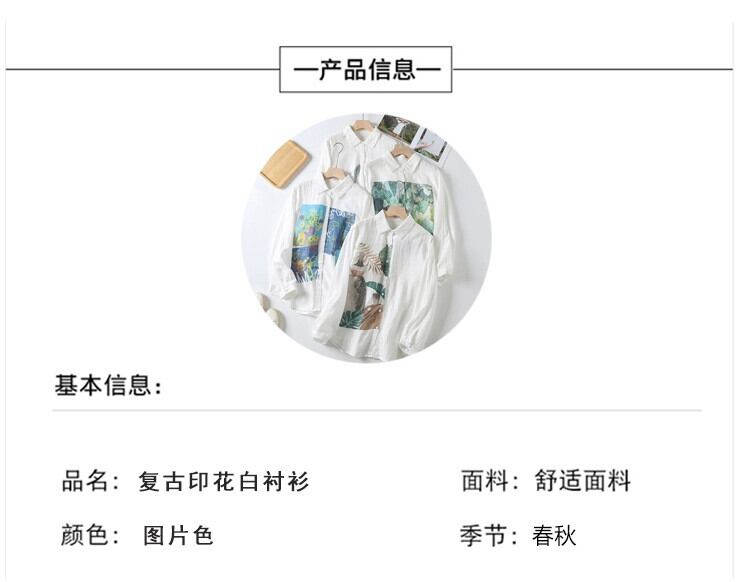 ese and eign trade ビッグブランドテールグッズクリアランスレディースルーズプリント長袖トップス文学二重層糸コットンとリネン長袖シャツ ロング sine27148487093