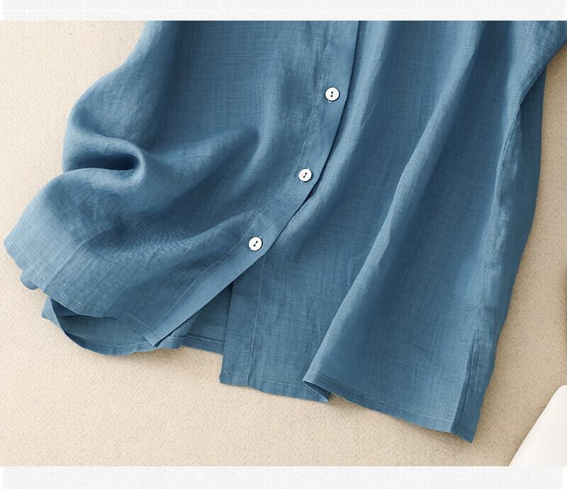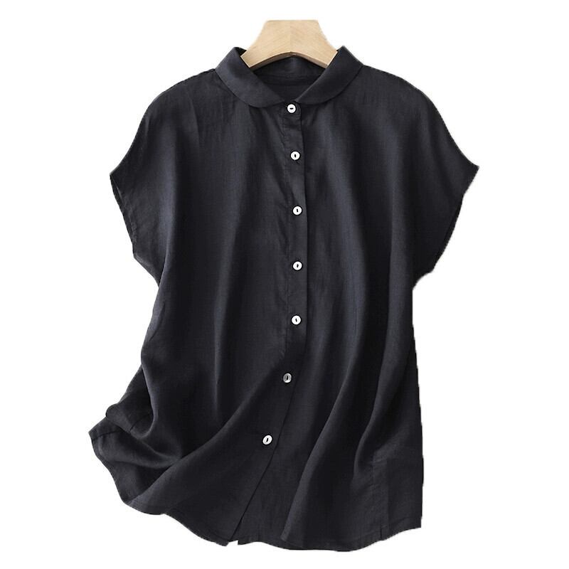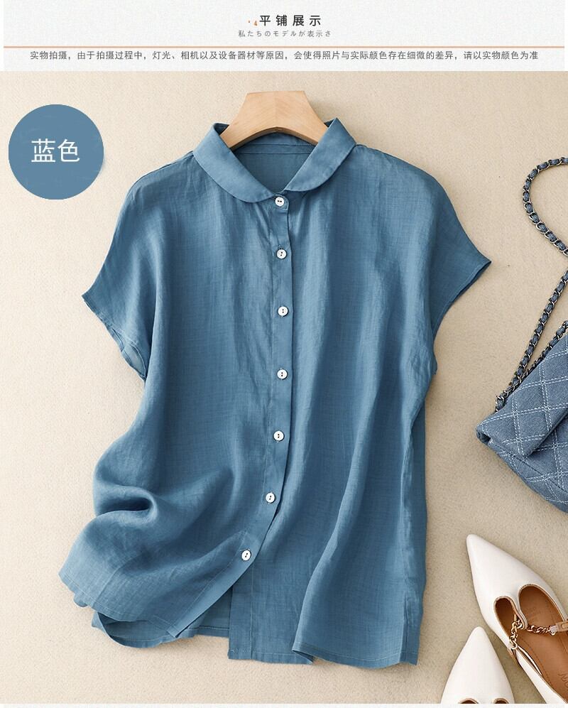 eign trade counter ブランドテールグッズ夏のライトリネン半袖シャツ女性のルーズカジュアルコットンとリネンの人形襟トップ サマー 夏物 sine57039548504