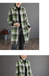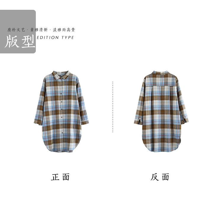 eign trade ese ビッグネームカウンターグッズレディース起毛長袖チェック柄シャツルーズレトロミッドレングスリネントップ ロング sine26627380361