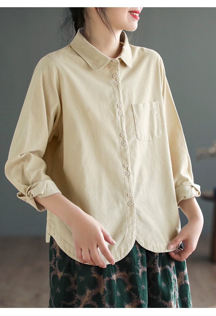 Eign Trade Counter ブランド テール グッズ レディース レトロ コーデュロイ 長袖シャツ ルーズで多用途なラペル コットン カーディガン トップ ロング sine69296917978