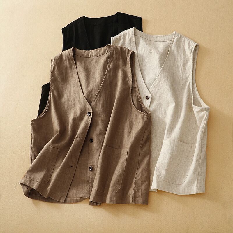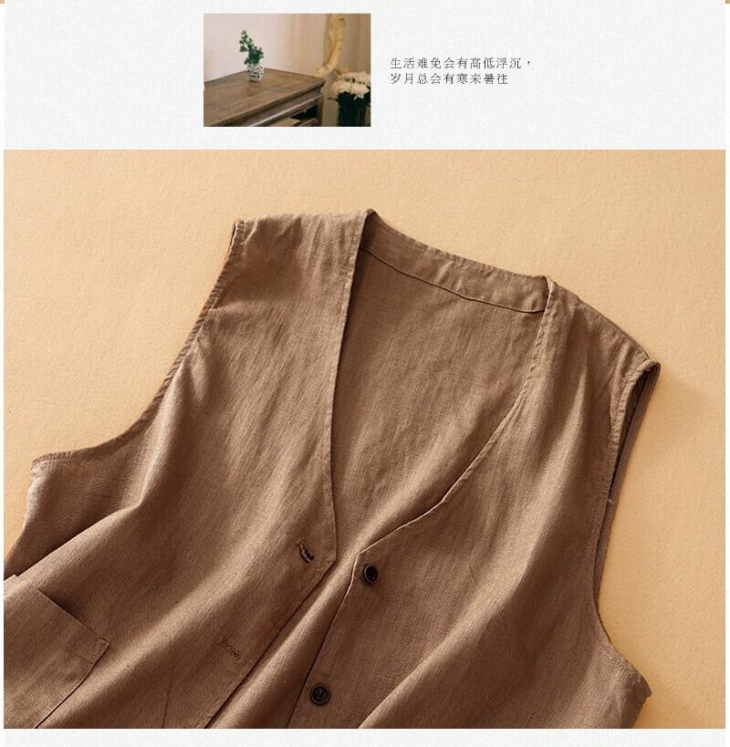 カウンタークリアランスグッズ レディース リネン アウター ベスト ベスト ルーズ V ネック 綿麻 ノースリーブ トップス コットン Vネック sine86399720404