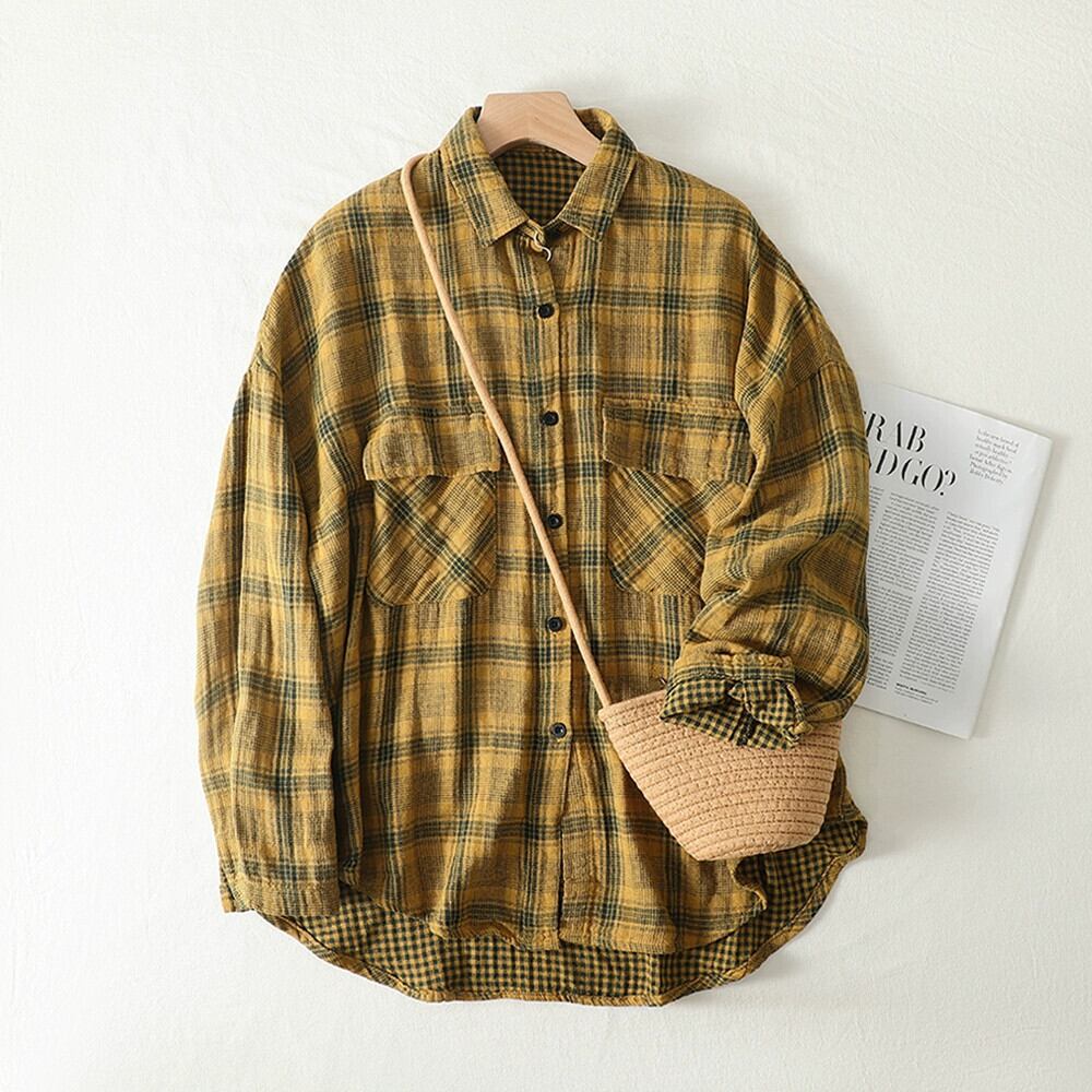eign trade ese オリジナルハイエンドブランド香港スタイルラペルシャツレディースルーズカジュアル長袖シングルブレストトップ ロング sine10870024395