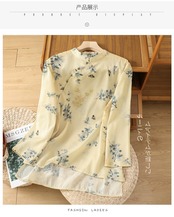 ディスカウント ストア ショッピング モール撤退レトロな斜めラペル プリント チャイナ トップ女性の中国風の改善された綿とリネンの長袖シャツ ロング コットン sine75570799702
