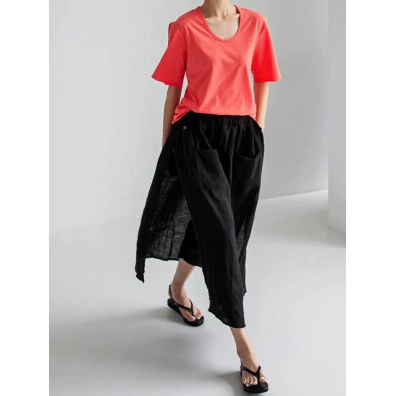 ディスカウントストアショッピングモールレトロリネンワイドレッグパンツスカートレディースルーズハイウエストコットンとリネンのスリットカジュアルパンツ sine59737394284