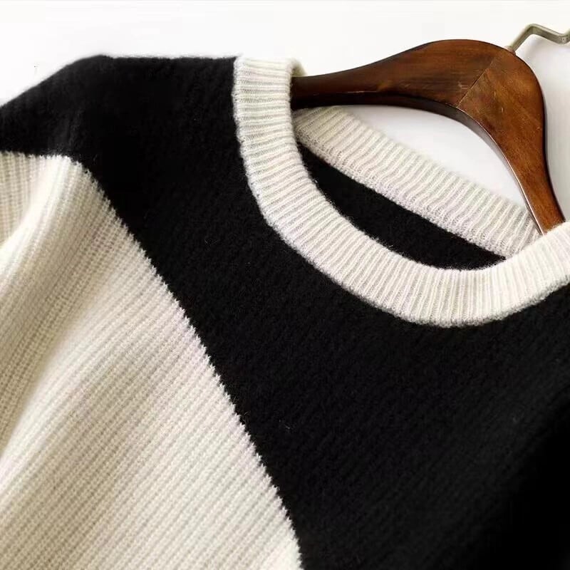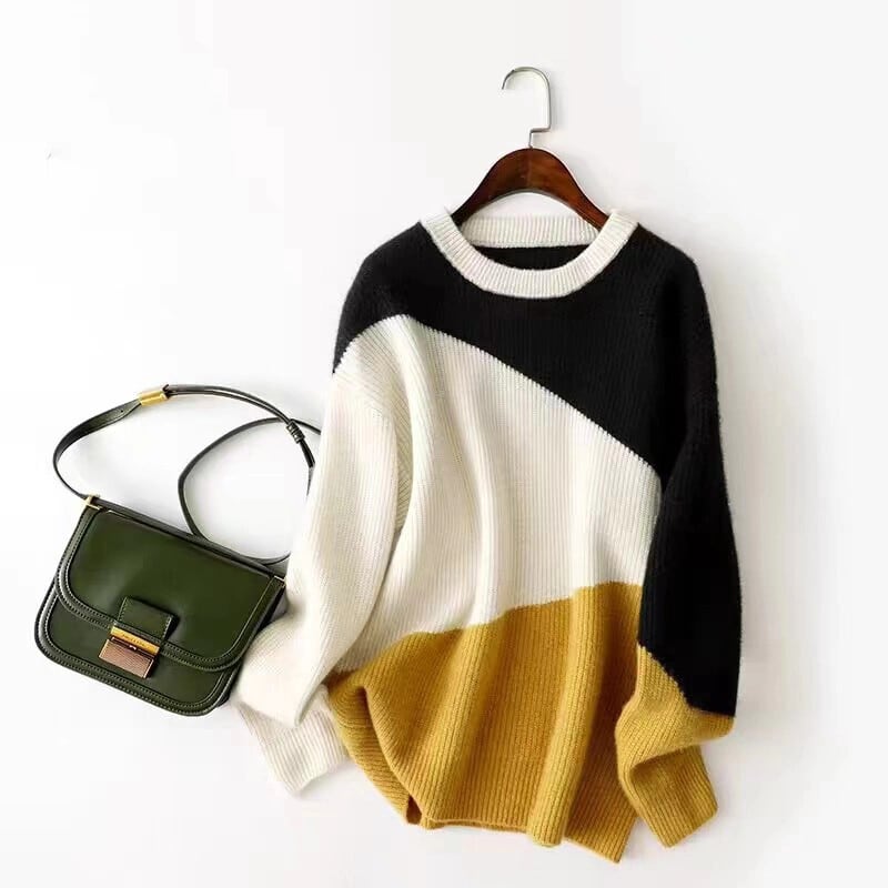 eign trade counter ブランドテールグッズカラーブロックニットラウンドネックセーター女性秋と冬の怠惰なスタイルルーズソフトワックスプルオーバートップ オータム 秋物 ウィンター 冬物 Oネック sine73443522222