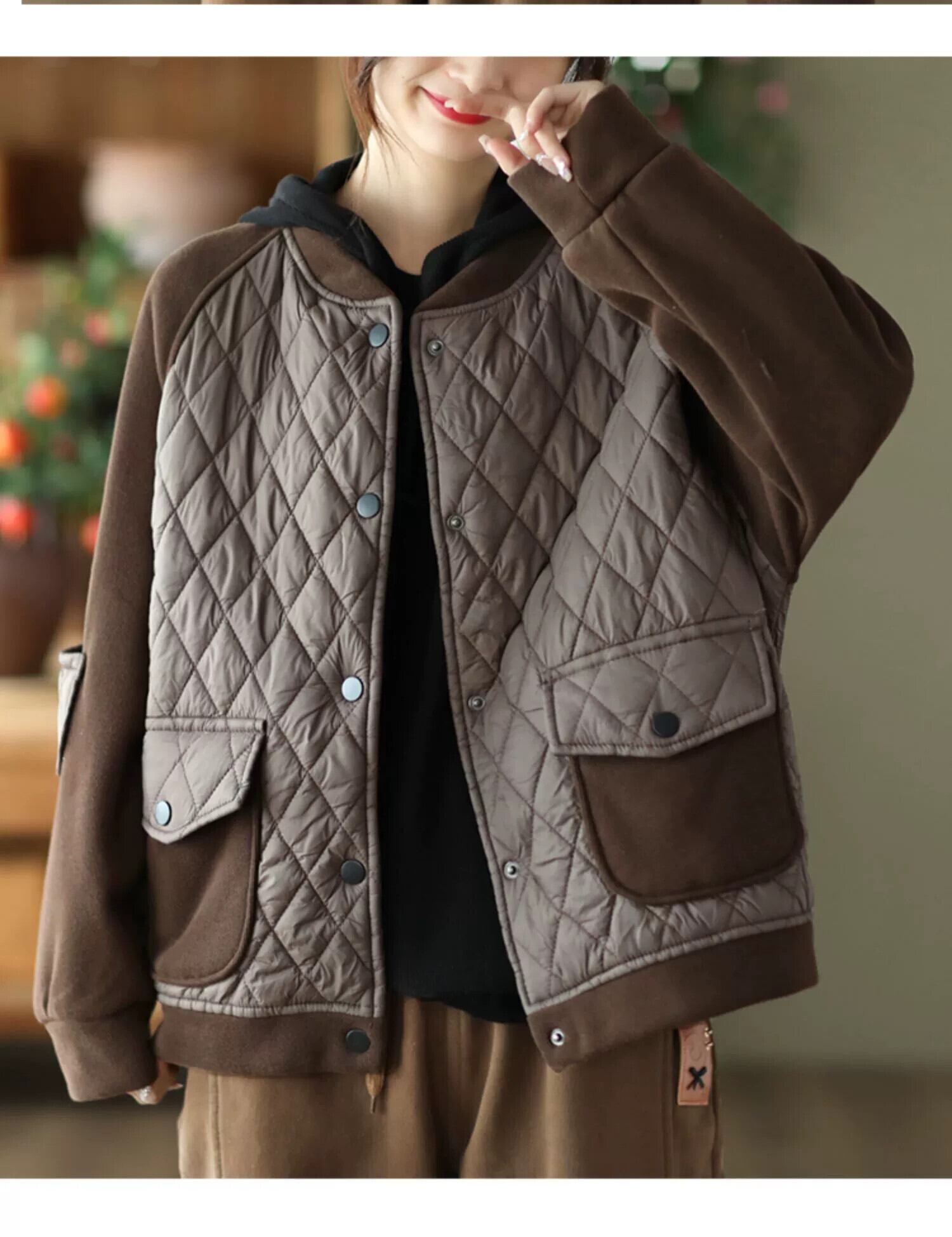 永貿易輸出ビッグブランドテール商品キャビネットから削除キルティング肥厚野球ジャケット女性のレトロなルーズ菱形スタンドアップカラーコットンコート sine36372122256