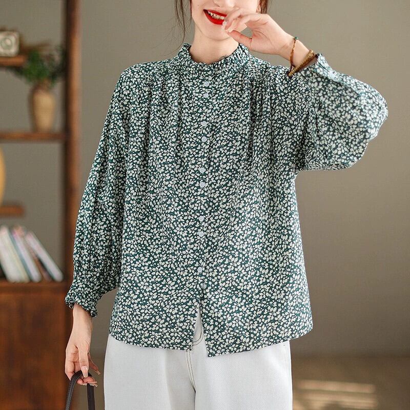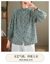 Eign Trade 輸出ブランドテールグッズレトロ花柄長袖シャツ女性の芸術的なルーズカジュアルスタンドアップカラーシングルブレストトップ ロング sine76280824798