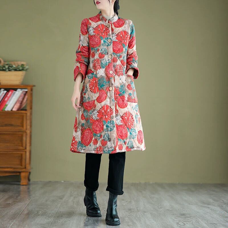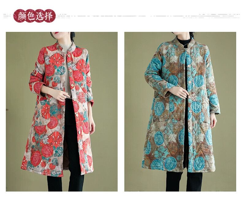 Eign Trade Export Tail Goods エスニックスタイルプリントキルティングジャケット女性厚くて暖かいミッドレングスのコットンコート冬 ウィンター 冬物 sine65253791276