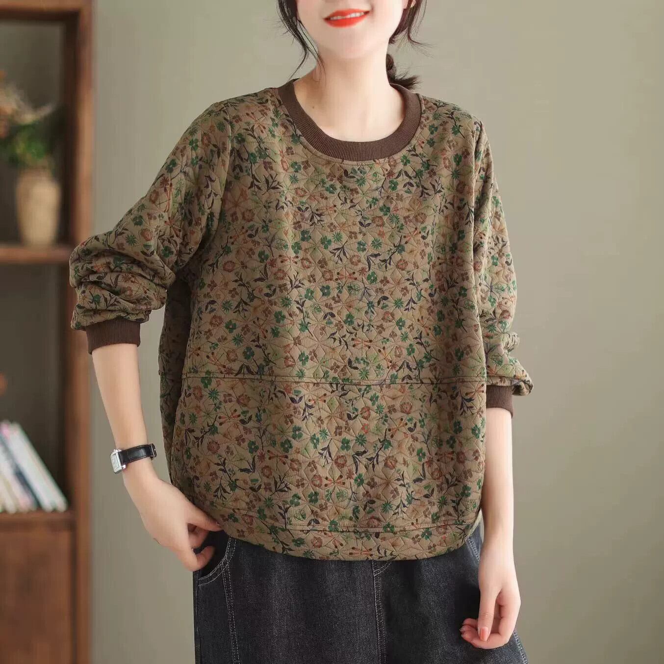 eign trade ese オリジナルハイエンドブランドレトロプリントラウンドネックスウェットシャツ女性ルーズカジュアルインナーレイヤリングシャツトップ Oネック sine79928050668