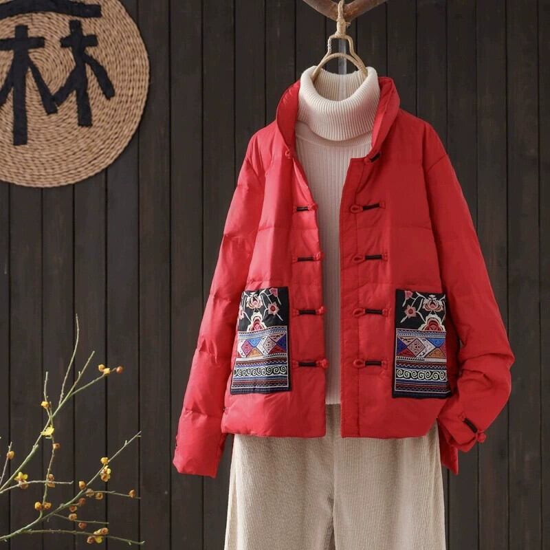 クリアランスカウンター最後の在庫レトロバックルコットンコート女性のルーズな新しい中国風のライトダウンコットンコート sine26330309456