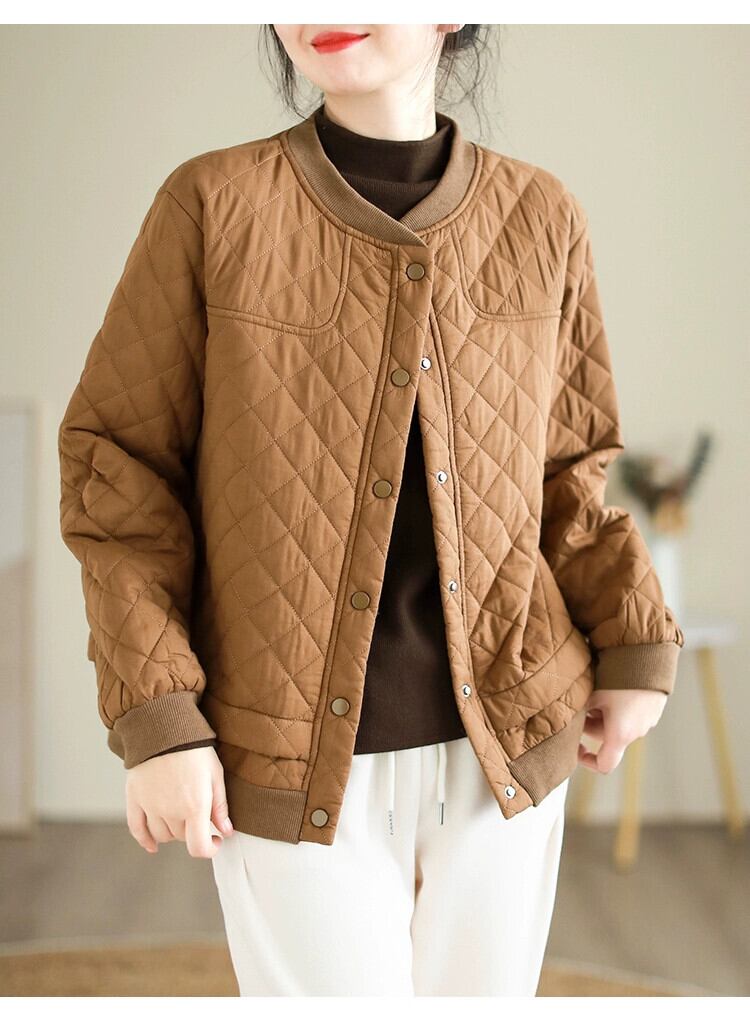 Eign Trade Export Big Tail Goods キャビネットから撤収レトロキルティング野球ジャケット女性のルーズ菱形スタンドアップカラーコットンコート sine75161181696