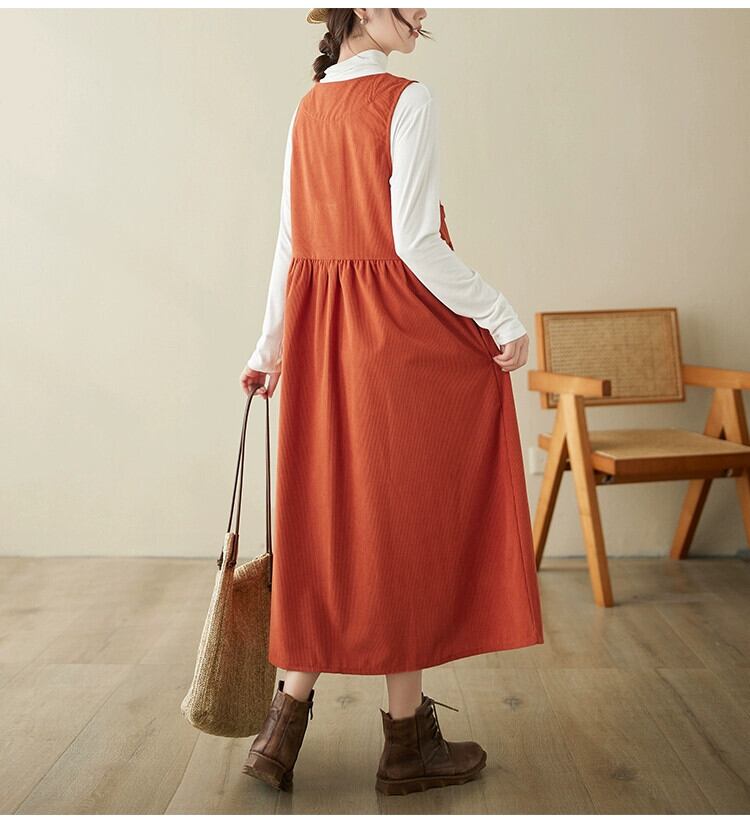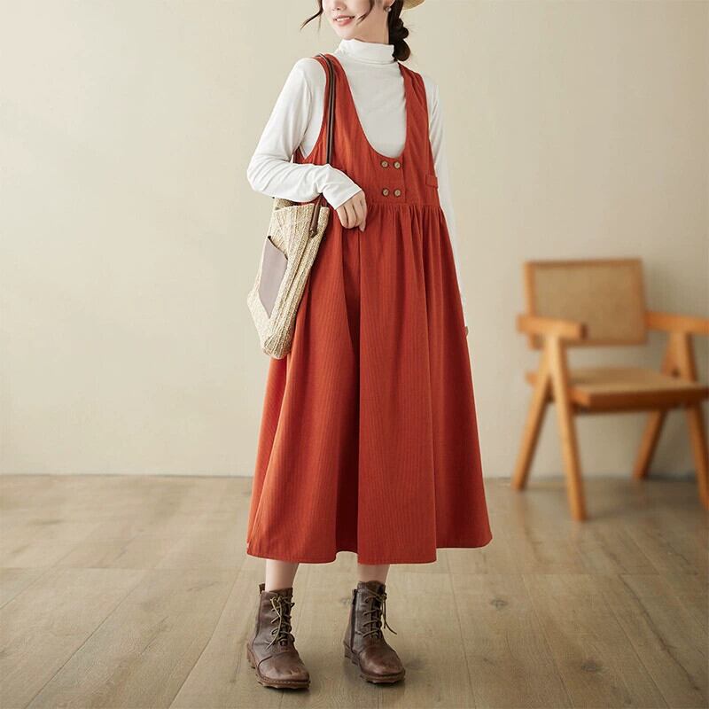 ese オリジナル eign trade ブランド ピンストライプ サスペンダー ドレス レディース ゆったり 大きいサイズ ミドル丈 コーデュロイ ベストドレス 大きめサイズ sine17940655770