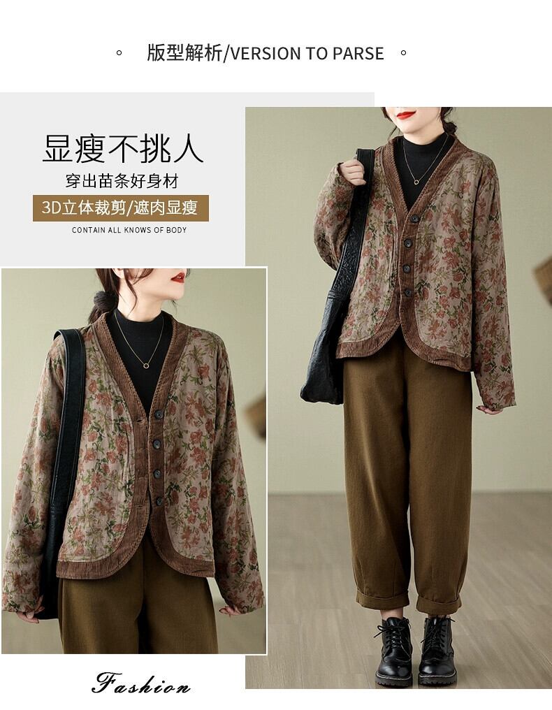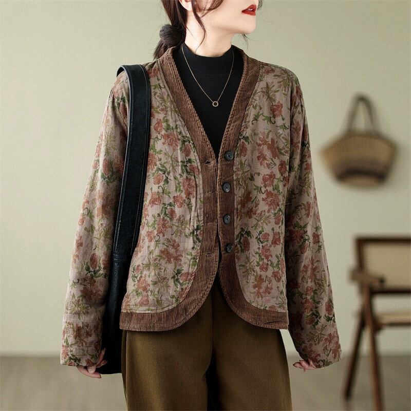 牛クリアランスハイエンドテールグッズレトロプリント綿入りジャケット女性のエスニックスタイル厚く暖かい V ネックコットンコート Vネック sine68883765797