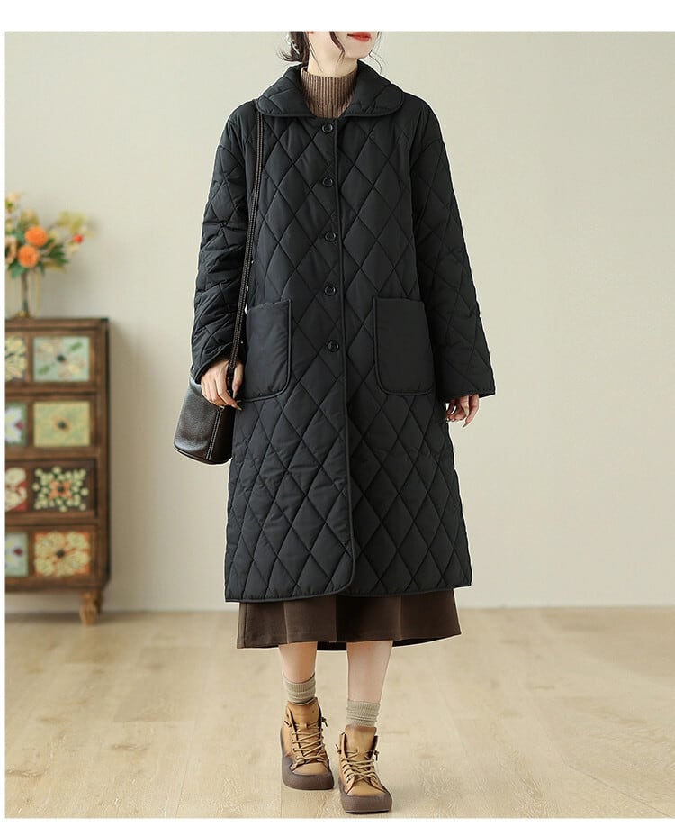 eign trade ese オリジナルビッグブランド撤退菱形ミッドレングスコットンコート女性の緩くて軽いキルティングコットンコート sine12738204298