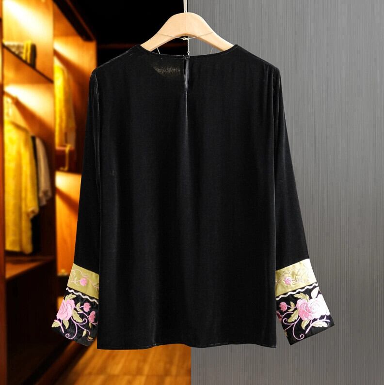 ビッグブランドテール商品のクリアランスカウンター除去中国風刺繍ベルベットボトムシャツ女性ルーズカジュアルラウンドネック Tシャツトップ レッド Oネック sine23460787827