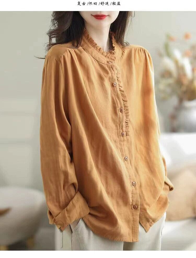 eign trade counter ブランドテールグッズ ese 純粋な綿菌類エッジスタンドカラーシャツ女性のルーズカジュアルボトミングカーディガントップ コットン ピュア sine54432429305