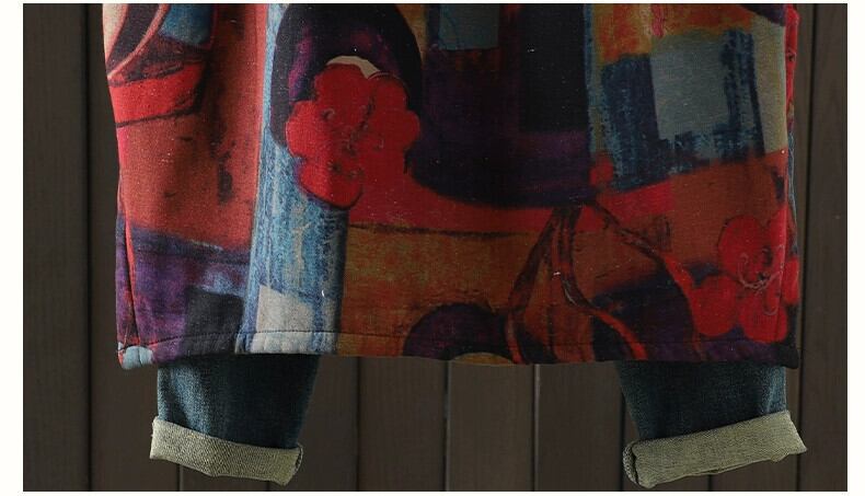 クリアランスカウンター最後の在庫プラスベルベット肥厚ウインドブレーカージャケット女性レトロルーズプリントミッドレングスコート sine98777909533
