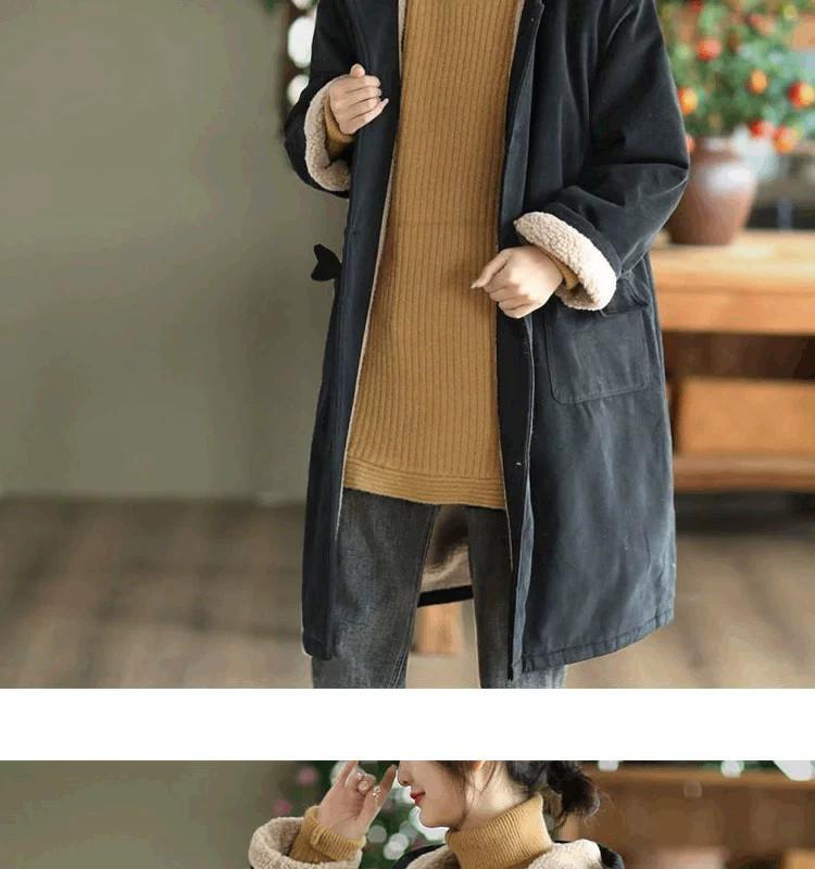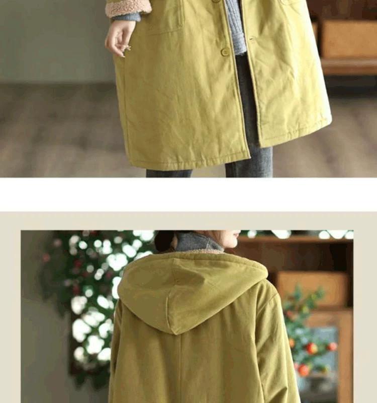 ディスカウントストアショッピングモール撤退ラムウールフード付きコート女性のルーズベルベット肥厚ミッドレングスコットンコート sine21618538111