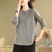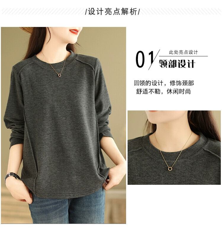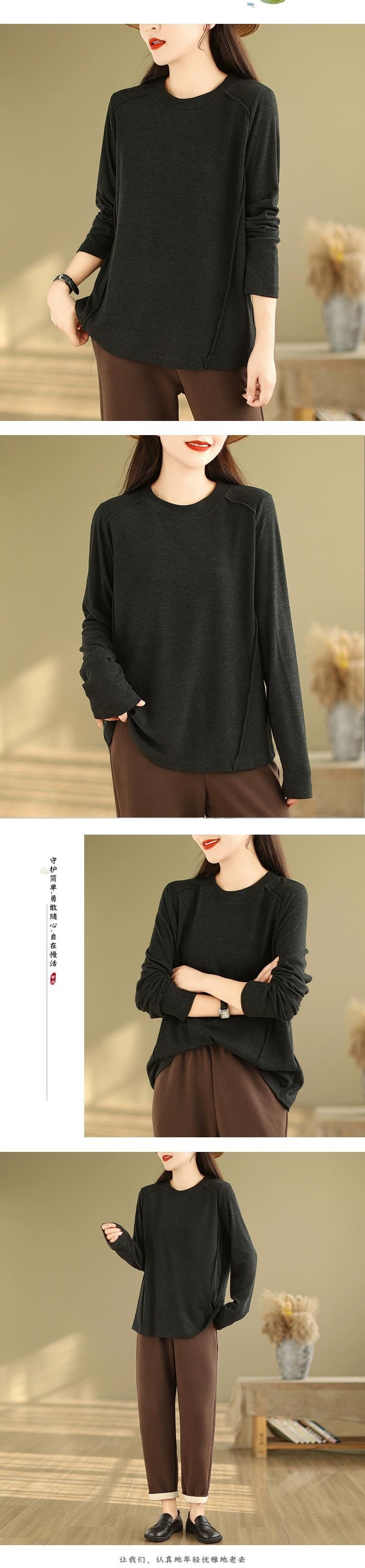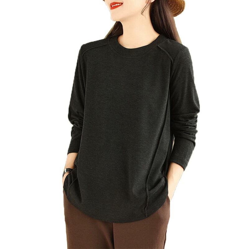 eign trade ese オリジナルハイエンドブランドニットボトムシャツ Tシャツ女性ルーズカジュアルインナーラウンドネック長袖トップ ロング Oネック sine48428112010