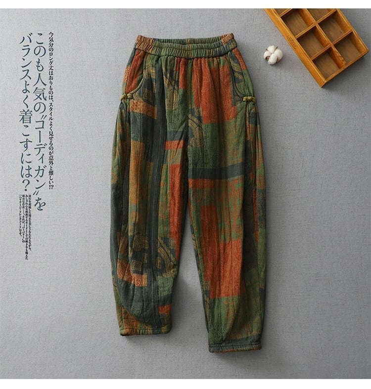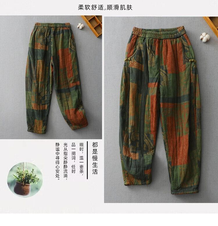 ビッグブランドテール商品のクリアランスカウンター除去レトロプリントキルティングハーレムパンツ女性ルーズハイウエスト肥厚暖かい綿パンツ ハイウェスト コットン sine30897973050