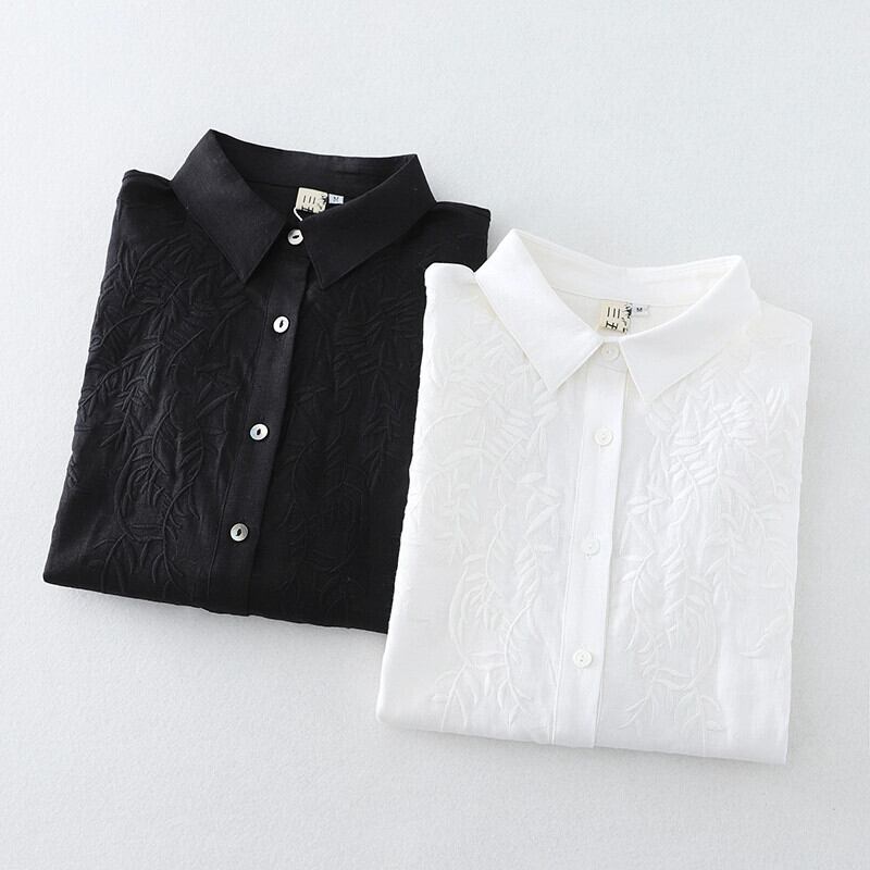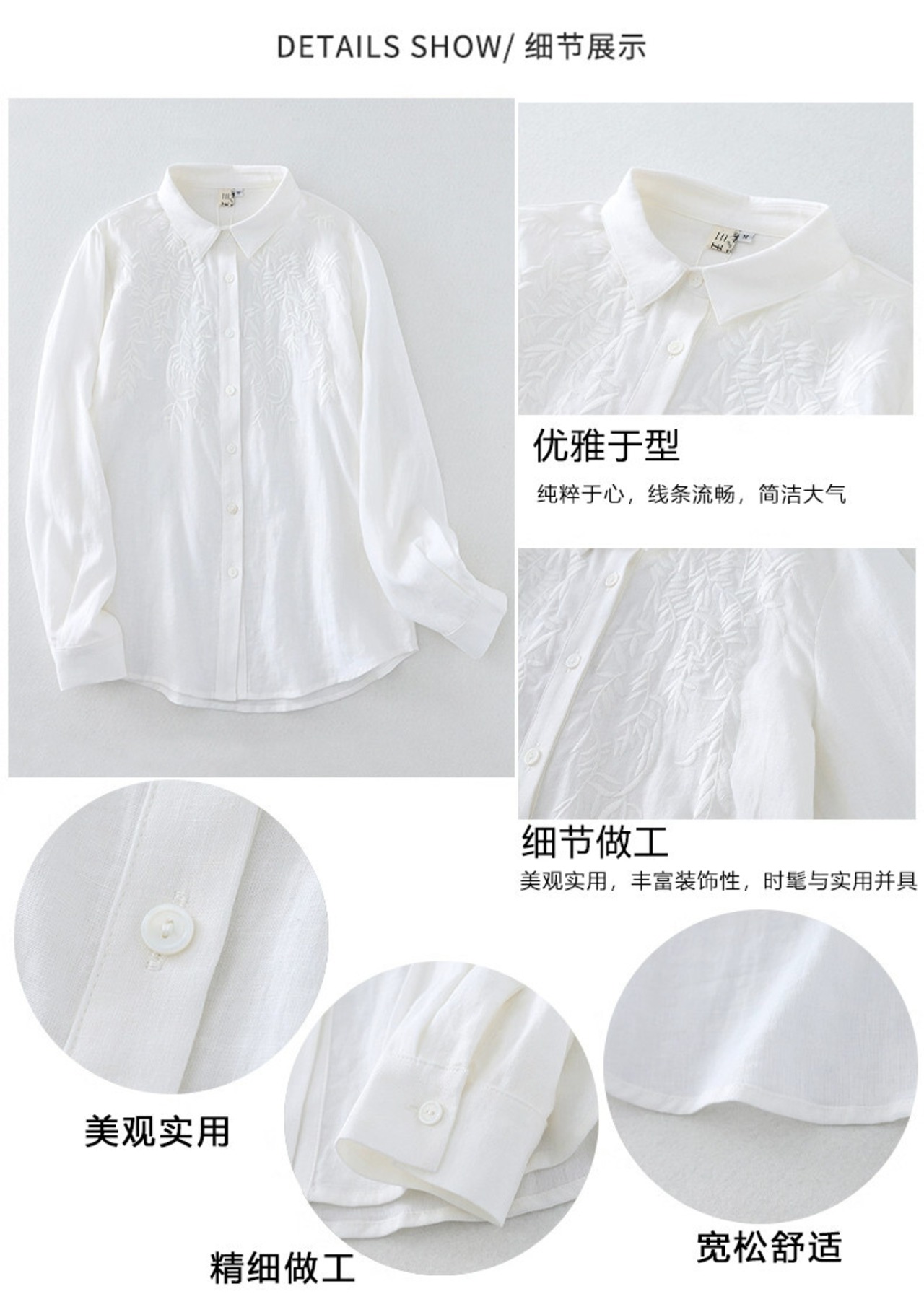 文学的な綿とリネンのシャツジャケットの女性、春と秋のスタイルの通勤、ルーズカジュアルな重工業の刺繍入りボトリングシャツトップ レッド コットン スプリング 春物 オータム 秋物 sine88477680744
